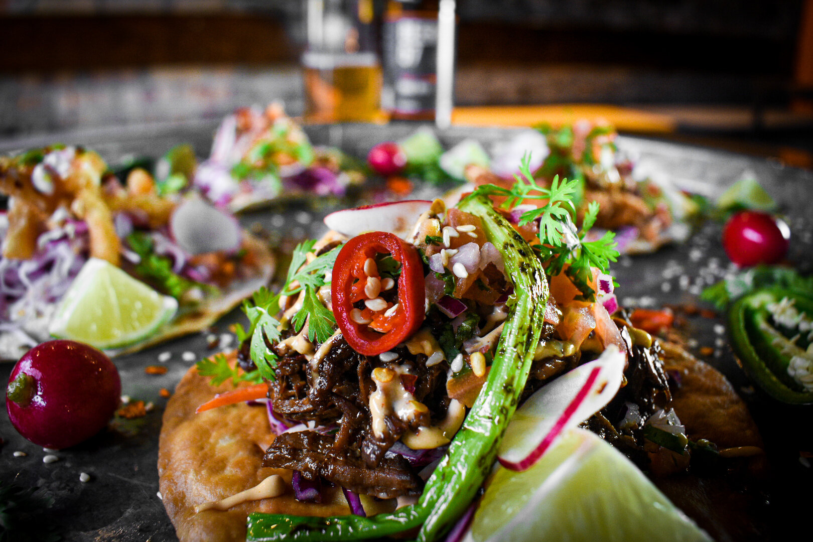 In 2015, they refitted an old and beat-up shipping container into a fully equipped street food kitchen and took up permanent residence on the riverfront. The new eatery, POD, was soon joined by Decky (their carefully converted double-decker bus with heating, tunes and comfortable seating for 60) in 2018, bringing the total seating available at POD to 100.